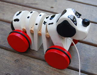 Wooden doggie, makes a fun clacking sound when pulled (fun for the kids, not us, it's horrendously noisy) - $1