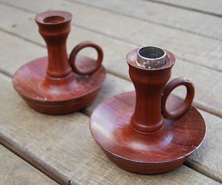 Pair of red-gum candle holders, never can be too prepared for a power-cut - $1
